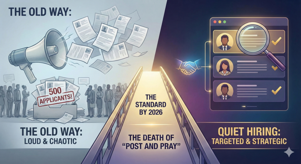 By 2026, I predict this traditional “post and broadcast” method will no longer be the primary way companies fill critical roles. It will be replaced by a new standard: Quiet Hiring.